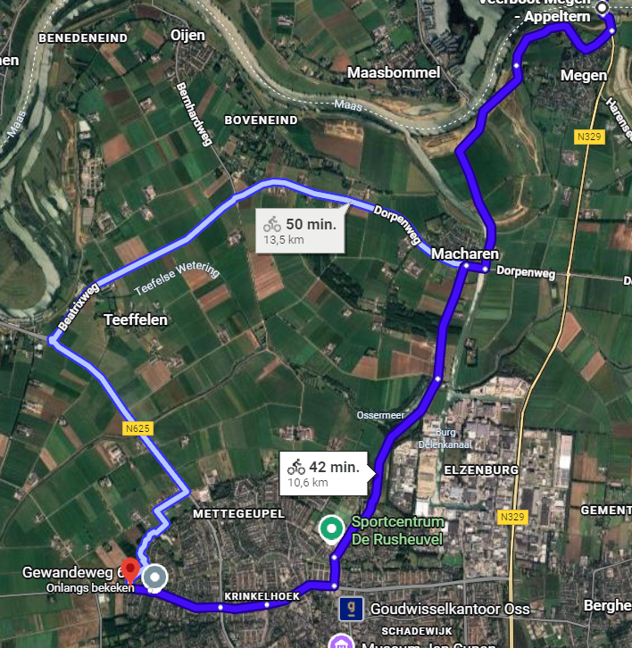 deze route is wat langer dan die vanaf megen maar er is niet veel verschil