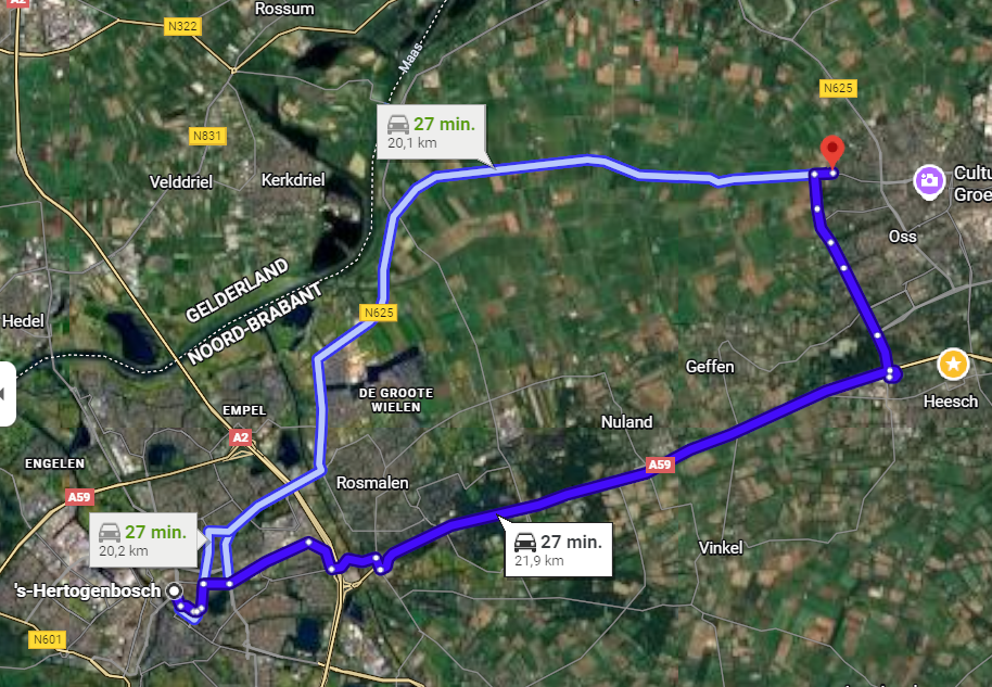 Op deze route moet je de maasbrug overbruggen, deze weg duurt 43 minuten wat tot nu toe de langste reistijd is
